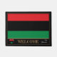 Tapis : Drapeau panafricain et tapis "Bienvenue" de l'UNIA - Symbole panafricain du drapeau - UNIA / Tribande horizontale de rouge, noir et vert. Le drapeau panafricain—aussi connu sous le nom de drapeau afro-américain, drapeau de libération noire, drapeau de l'UNIA. Souvent utilisé avec le mouvement Black Lives Matter.
