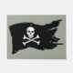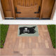 Entrez dans cette maison à vos risques et périls ! Drapeau de pirate "jolly roger" classique avec crâne et os croisés agitant au vent.