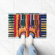 Un mat coloré de style dessin animé avec un motif à code barre. Deux pieds nus sont montrés sur le tapis, comme s'il était scanné avant d'entrer. Bienvenue à vos proches dans le style avec ce - Amuse Barcode Design - Analysez vos pieds avant d'entrer mat de porte. Pour une personnalisation supplémentaire, cliquez simplement sur le bouton "Customiser" pour accéder à notre outil de conception. Redimensionnez, faites pivoter, modifiez les couleurs, ajoutez du texte, et plus encore pour le rendre unique à vous !