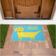 Vous pouvez customiser ce tapis de portes avec votre propre slogan ou laisser le message drôle : CETTE MAISON EST BANANES ! Il présente une illustration d'un chien qui est certainement de la banane. Ce dessin de chiot en dachshund est fait de bananes jaunes et placé contre un arrière - plan bleu vif.