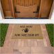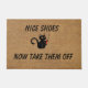 Ce tapis de porte est doté d'une surface brun clair et texturée, avec un design ludique. Au centre, il y a un chat noir avec des marques blanches, agitant une patte de manière amicale. C'est une façon humoristique et accueillante de rappeler aux clients de retirer leurs chaussures avant d'entrer. Parfait pour ajouter une touche de fantaisie à votre entrée !