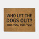 Drôle chien tapis de porte à thème avec une imitation texture coco, et la pièce sur les paroles de chanson "qui a laissé les chiens dehors ? vous, vous, vous, vous".