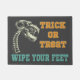 Amusez-vous cette saison d'Halloween avec ce squelette de dinosaure éffrayant et effrayant. Texte Lit Trick ou Treat, essuyer vos pieds. Drôle tapis de porte Halloween est parfait pour accueillir les invités costumés Halloween. Accessoire amusant pour le travail, bureau, cabine, dortoir, véranda avant, manoir hanté et plus encore.
