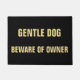 "Gentle Dog, attention au propriétaire" Drôle, hilarant, avertissement humoristique, faux script or sur noir, support en caoutchouc antidérapant, revêtement extérieur / intérieur / tapis de porte d'entrée. Un tapis de porte amusant pour les propriétaires de chiens, pour l'entrée de votre propriété - ferme - locaux d'affaires. Ajoute de l'humour à votre décor maison.