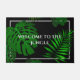 Ajoutez une touche d'humour à votre porte avec ce tapis de porte "Bienvenue dans la Jungle" ! Des feuilles tropicaux luxueux et verts (monstère et feuillage de feuilles de palmier) ornent l'arrière - plan noir classique et entourent le texte, qui apparaît dans une police de caractères audacieuse mais élégante, de couleur pâle. Transformez votre chaos en un paradis tropical avec ce tapis de porte amusant, contemporain et frappant ! Idéal pour un hangar à pots ou Elle-Shed pour jardiniers/amoureux des plantes.