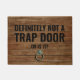 Paillasson drôle comportant un arrière - plan en bois imprimé, la poignée de porte, et l'énonciation "CERTAINEMENT PAS UNE TRAPPE….OU EST ELLE ?"