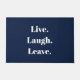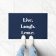 Enfin, un dicton inspirant pour les introvertis parmi nous. "Vis ! Rire. Pars." proclame ce tapis humoristique, qui s'adresse aux introvertis, aux anti-sociaux et aux maladroits socialement, qui reçoivent les invités avec un peu de réticence et peut-être même un peu d'anxiété. Une typographie blanche simple et moderne sur un arrière - plan bleu marine classique. Inattendu, décalé et juste un peu sarcastique, ce tapis de portes amusant est parfait pour ceux qui apprécient l'humour sombre et sec et n'ont pas peur de le partager avec leurs visiteurs (qu'ils espèrent partir bientôt).