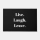 Enfin, un dicton inspirant pour les introvertis parmi nous. "Vis ! Rire. Pars." proclame ce tapis humoristique, qui s'adresse aux introvertis, aux anti-sociaux et aux maladroits socialement, qui reçoivent les invités avec un peu de réticence et peut-être même un peu d'anxiété. Une typographie blanche simple et moderne sur un arrière - plan noir classique. Inattendu, décalé et juste un peu sarcastique, ce tapis de portes amusant est parfait pour ceux qui apprécient l'humour sombre et sec et n'ont pas peur de le partager avec leurs visiteurs (qu'ils espèrent partir bientôt).