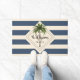 Paillasson Dusty Blue White Stripes Tropical Beach Monogramme