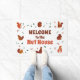 Parfait pour les amateurs d'écureuils, ce dessin original présente huit adorables écureuils, de jolis feuilles dessinés à la main et entoure le texte personnalisable qui dit, "Bienvenue à la Maison des Noix". Épinez votre espace avec ce tapis doux qui fera chavirer vos invités tout en montrant votre amour des écureuils !