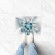 Fleur d'imaginaire unique et élégante avec effet 3D. Couleurs pastel bleu et gris. Conception pour votre tapis de porte et plus encore.