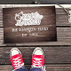 Faites une entrée grandiose à votre nid d'amour avec notre élégant bois rustique juste marié mat de typographie blanche. Le design avant est composé d'un arrière - plan rustique à la texture de bois orné d'un logo blanc "Just Married", de coeurs et d'anneaux mariages. Personnalisez-le avec les noms de la mariée et du marié, ainsi que l'année mariage établie en blanc chic élégant. Ce tapis de portes n'est pas seulement un bienvenu ; c'est une déclaration élégante de votre histoire d'amour. Allongez votre porte avec une touche de romantisme et de personnalisation. Parce que chaque pas dans votre maison devrait ressembler à une fête.