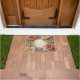 It supports a festive entry door mat mood with its flowing petals.