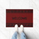 Élégant Motif grec noir sur marron Welcome door mat. Le texte de bienvenue peut être personnalisé.