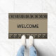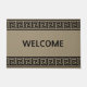Elégant Motif grec sur tapis de porte d'accueil beige. Le texte de bienvenue peut être personnalisé.