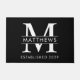 Elégant noir blanc personnalisé Monogramme Nom Porte - La manière parfaite d'accueillir les invités dans votre maison. Affiché en noir et blanc, mais d'autres couleurs sont disponibles. Le mat de porte présente votre Monogramme et votre nom de famille, et l'année où votre maison a été établie. Cela ferait un merveilleux mariage ou un cadeau pour le ménage. Partie d'une collection.