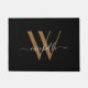 Paillasson Élégant Noir Monogramme Nom Script Initial