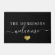 Paillasson Élégant Nom de famille Script Welcome Gold Heart