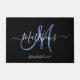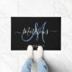 Paillasson Élégant script de monogramme noir bleu Nom de fami