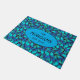 Tapis de porte élégant imprimé partout avec des papillons morpho bleus dessinés à la main, avec une zone de texte personnalisable sur le dessus pour ajouter votre nom de famille. Ce tapis ajoutera une atmosphère tropicale accueillante à votre maison