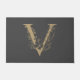 Paillasson Élégant V Boho Floral Monogramme initial Gris Or