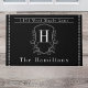 Paillasson Élégante adresse monogramme de famille noire et bl