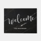 Paillasson minimaliste et moderne personnalisé avec du marbre noir et des lettres manuscrites élégantes. Un cadeau parfait pour les nouveaux propriétaires ou les jeunes mariés.