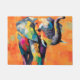 Un éléphant joyeux avec son tronc surélevé, éclatant de couleurs arc-en-ciel qui apporte bonheur, énergie positive, et un esprit ludique.