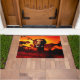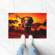 Un éléphant de taureau émerge de la brosse, baigné dans le coucher du soleil écarlate.
