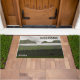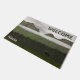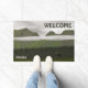 Un tableau numérique "primitif" ou de style folklorique de conifères verts et de montagnes en Alaska par une journée très grise et nuageuse. Un orignal (Alces alces) au premier plan donne de l'échelle à la scène. Il y a deux cas de lecture de texte personnalisable, "Alaska" et "WELCOME".