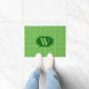 Tapis de motif en carreaux Art Déco d'inspiration égyptienne avec monogramme en vert émeraude foncé et chaux pastel - mélange média design numérique