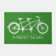 Joli tapis vert imprimé avec un vélo en tandem blanc et les mots En parfait équilibre.