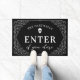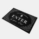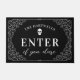 Accueillez vos invités avec ce tapis de porte Halloween éffrayant-chic ! Design comporte un arrière - plan noir dont le nom est incurvé sur le dessus, et "Entrez si vous osez" en dessous. Une bordure en fibre et un accent squelette complètent ce design éffrayant d'Halloween.