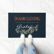 Accueillez les invités avec gratitude à l'aide de ce tapis de portes moderne Eucalyptus se sentant Grateful. Son arrière - plan bleu foncé et ses accents d'eucalyptus aquarelle apportent une élégance moderne à votre entrée Thanksgiving. Une façon élégante d'accueillir amis et famille pendant les vacances et tout l'automne.