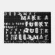 Facile à utiliser modèle de natte. Utilisez ce modèle pour concevoir votre propre tapis de porte personnalisé en noir et blanc. Cool, funky urbain grunge style typographie mot collage. Vous pouvez customiser en créant votre propre devis en utilisant le champ fourni. Vous pouvez cliquer sur la personnaliser plus loin pour changer la couleur de l'arrière - plan, sélectionner d'autres polices selon votre goût, ou utiliser le bouton "contacter ce concepteur" ci-dessous pour obtenir de l'aide. Un ajout amusant et unique à votre décor de maison, ou un cadeau réfléchi pour lui ou pour elle.
