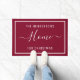 Bienvenue famille et amis à votre porte ce Noël avec cet élégant tapis de portes bordeaux. Customisez-le avec votre nom et changez les mots si vous voulez.