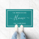 Bienvenue famille et amis à votre porte ce Noël avec ce tapis de portes turquoise élégant et élégant. Customisez-le avec votre nom et changez les mots si vous voulez