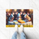 Ce joyeux Doormat propose une jolie famille de souris à la table à manger - beaucoup de fromage, beaucoup de plaisir! Mignonne porte pour les familles adorables ! Arrière - plan et texte personnalisable. Beau Bienvenue pour vos invités, visiteurs. Conçu par AIbyMarion