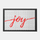 Ce joli tapis de porte en faux carreaux noir, blanc et rouge est parfait tout l'hiver. Ses lignes épurées, ses couleurs simples et sa motif vintage sont intemporelles et polyvalentes. Ce paillasson dit "joie" en rouge. Ils font de grands cadeaux de Noël qui peuvent être utilisés année après année!