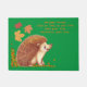 Mignonne hérisson mat de bienvenue avec des mots accueillants. Feuilles automne/automne.