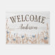 Cette porte de style ferme est décorée avec une simple représentation d'un champ d'été de fleurs sauvages sur un arrière - plan de shiplap. Personnalisez-le avec votre nom désiré pour un cadeau mémorable.