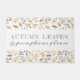 Tapis sur mesure pour la saison des fêtes avec "Feuilles d'automne et Citrouilles s'il vous plaît" conception typographique sur aquarelle feuilles d'automne motif.
