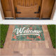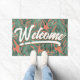 Paillasson Feuilles tropicaux Bienvenue Script Vert Orange