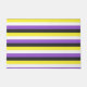 Le drapeau non-binaire a été créé en 2014 par l'activiste Kye Rowan. Chaque couleur de bande représente différents types d'identités non-binaires : Jaune pour les personnes qui s'identifient en dehors du binaire de genre, blanc pour les personnes non-binaires avec plusieurs sexes, violet pour celles avec un mélange de sexe masculin et féminin, et noir pour les individus de genre.