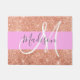 Glam et rose girly, pêche, parties scintillant d'or scintillent le nom de monogramme blanc et le tapis de porte initial. Votre nom personnalisé et votre monogramme sont écrits dans un élégant script écrit à la main avec un arrière - plan rose. Vous pouvez modifier la couleur du texte, le style et la taille de police à l'aide de l'option personnaliser. Un cadeau d'anniversaire ou de Noël parfait !