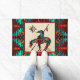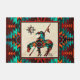C'est un "One of a Genre" Unique bout de la porte de la piste! Il comprend une extrémité amérindienne du sentier Indian and Horse sur un Arrière - plan en grès tan...Entouré d'une frontière en Turquoise, Orange & Noir! Design D'Art Original Par L'Artiste Kerry Miller.