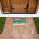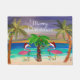 Flamants de Noël et palmiers porte côtière Décor de maison de vacances avec mon art. Tapis de porte pour usage intérieur ou extérieur. Amusants flamants roses de la côte et décorés palmiers tropicaux Design de vacances. Disponible en plusieurs tailles.
