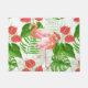 Aquarelle design motif avec des fleurs et des oiseaux flamands, la monstère et les feuilles de palmiers.