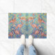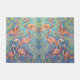 une peinture ludique de flamants roses avec des feuilles bleus et jaunes sur un arrière - plan violet est une façon amusante de s'accueillir chez soi avec un sourire.