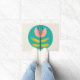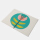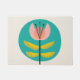 Un design d'art abstrait des années 1950 avec une fleur rose saumon avec des feuilles verts chartreuse contre un soleil turquoise, fait dans le style moderne du milieu du siècle.